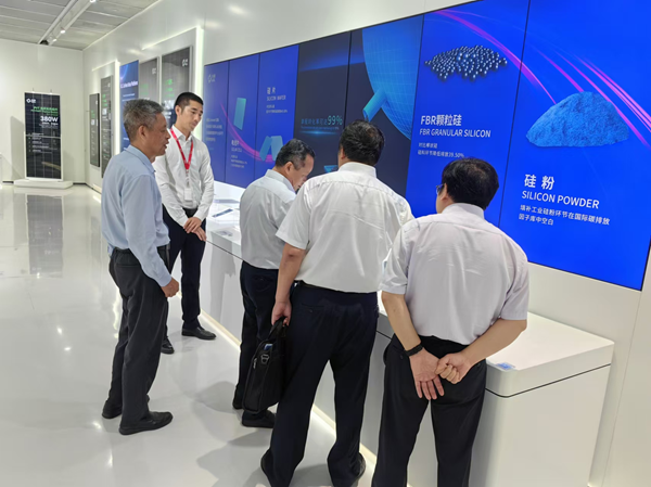 孙红军一行在协鑫集团相关领导陪同下参观了集团未来能源馆和党建馆。在陪同考察的过程中,协鑫集团中央研究院执行院长周曙光介绍了协鑫集团在企业发展历程、战略规划、生产经营、技术攻关等方面的情况;集团党群工作部主任费忠介绍了协鑫集团着力打造“红色引领、绿色发展”党建特色,形成“鑫心向党”协鑫党建品牌,持续强化政治引领,充分发挥企业党建效能,团结广大员工凝聚起巨大的奋斗、创新力量,促进绿色能源事业的发展壮大情况。