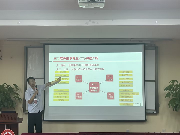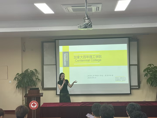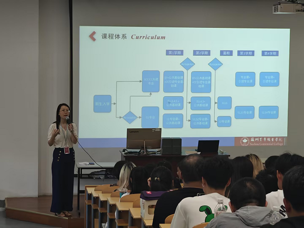 李露、沈石宏分别在2个会场讲解CC专业课程体系,加拿大百年理工学院苏州办公室郭雪辰老师为学生介绍加拿大百年理工学院概况,各CC专业课程体系负责人分享其特色优势及优秀学生案例。