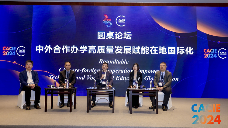 圆桌论坛环节由西交利物浦大学领导与教育前沿院院长陈健主持,、无锡职业技术学院爱尔兰学院院长张晓明、金华职业技术大学怀卡托国际学院院长邱晓华、浙江经贸职业技术学院国际教育学院院长司银霞和陕西铁路工程职业技术学院萨马拉交通学院院长齐红军围绕“中外合作办学高质量发展赋能在地国际化”主题进行交流研讨,解析高职院校合作办学痛点和难点,分享解决方案和最佳实践,会场气氛热烈。