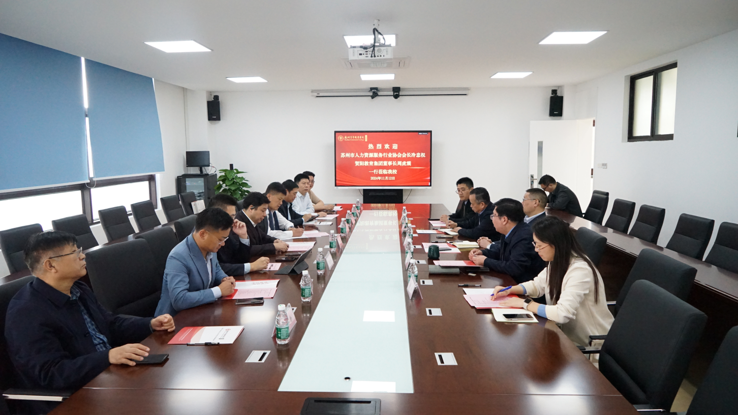 11月12日下午,苏州市人力资源服务行业协会会长冷忠权、贺阳教育集团董事长周虎震一行来开云调研交流。开云校长李世明出席接待,并在至诚楼举行了座谈会。副校长沈宗根及相关部门负责人陪同参与调研交流,会议由党委书记孙红军主持。