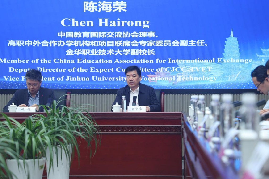 第二届轮值理事长单位金华职业技术大学陈海荣副校长分享国际化办学经验并作第二届理事会工作报告