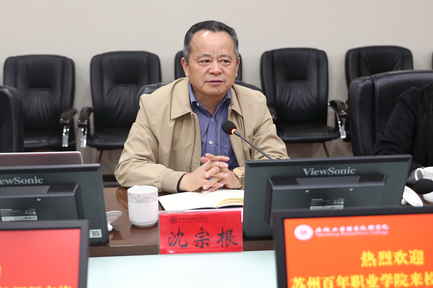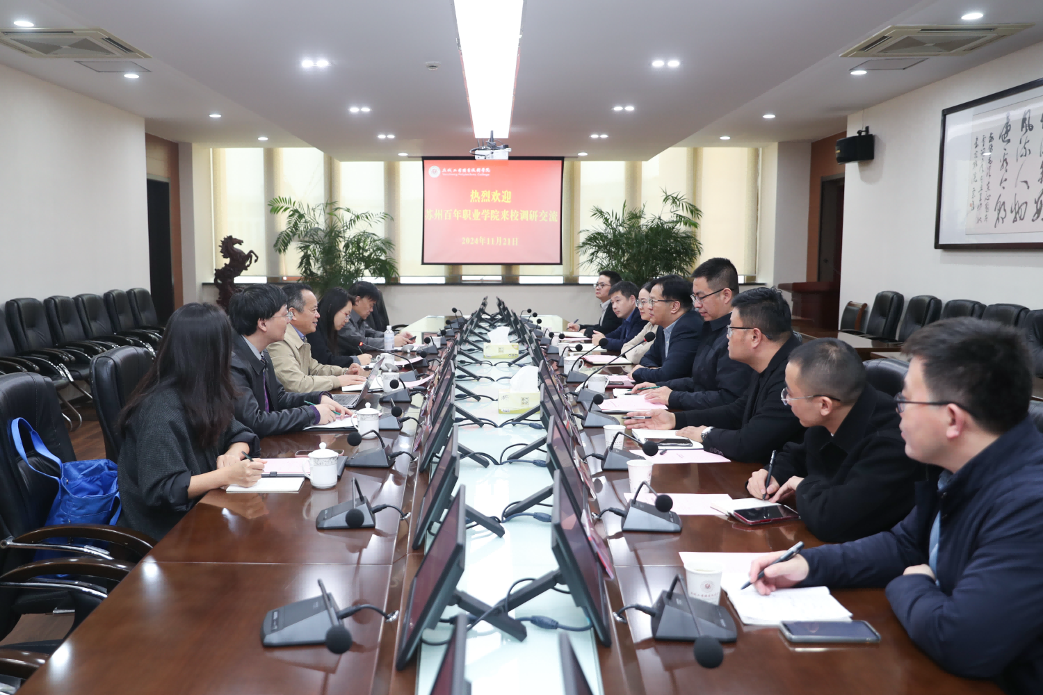 座谈中,盐城工业职业技术学院校长刘玉申介绍学校发展情况。沈宗根听取介绍后表示,盐城工业职业技术学院作为万人办学规模高校,在国家级技能大赛、项目实践教学以及国际人才培养等方面的做法与经验,特别在“一带一路”人才培养上的实绩成就,对学校高质量发展中的内涵建设做了鲜明注脚,期待两校加强交流,发挥好技能大赛、项目实训以及“一带一路”交流对两校协作共进的积极作用。