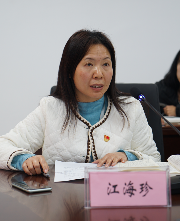 马克思主义学院院长江海珍则以《上好“关键课程”,聚力构建“大思政”协同育人格局》为题,分享自己对如何办好“关键课程”,构建“大思政”格局的思考。她提到,一是统筹推进大思政体系建设,构建思政育人“大平台”;二是上好思政课这一关键课程,不断提高课堂教学质量;三是贯彻协同育人理念,推进课程思政建设;四是高标准建设“大师资”,培养更多“人师”和“大先生”。