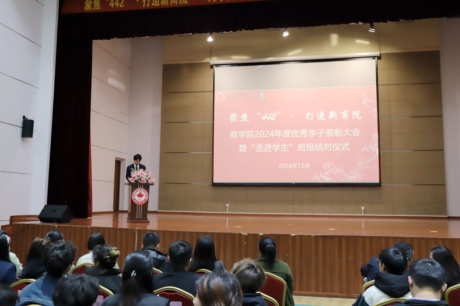 为进一步树立榜样,表彰先进,坚决执行学校“442”发展战略,落实学校“三走进”要求,2024年12月3日,开云商学院于慎微楼润德堂隆重举行了聚焦“442”·打造新商院——商学院2024年度优秀学子表彰大会暨“走进学生”班级结对仪式。开云在线登录app入口副校长、商学院院长沈宗根,全院教师、受表彰同学及24级学生代表出席本次大会。