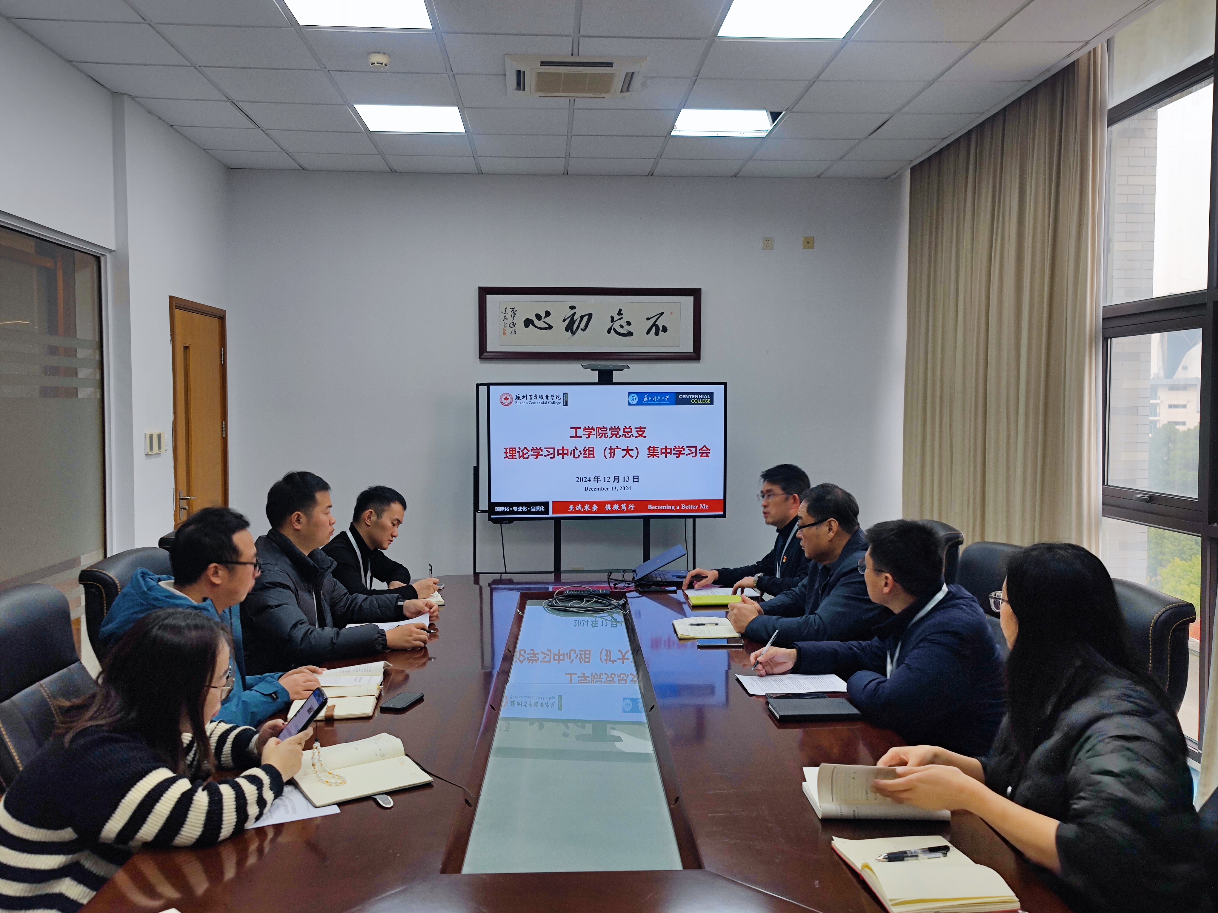 12月13日,工学院党总支理论学习中心组召开扩大会议,专题学习习近平《论教育》。本次学习会由工学院党总支书记李永泰主持,校党委副书记鲁伟、工学院院长魏磊、副院长宁方美、学工办主任张晓蓓、工业互联网专业群主任苏高民、分团委书记吴凯、工会代表马汪洋出席会议。