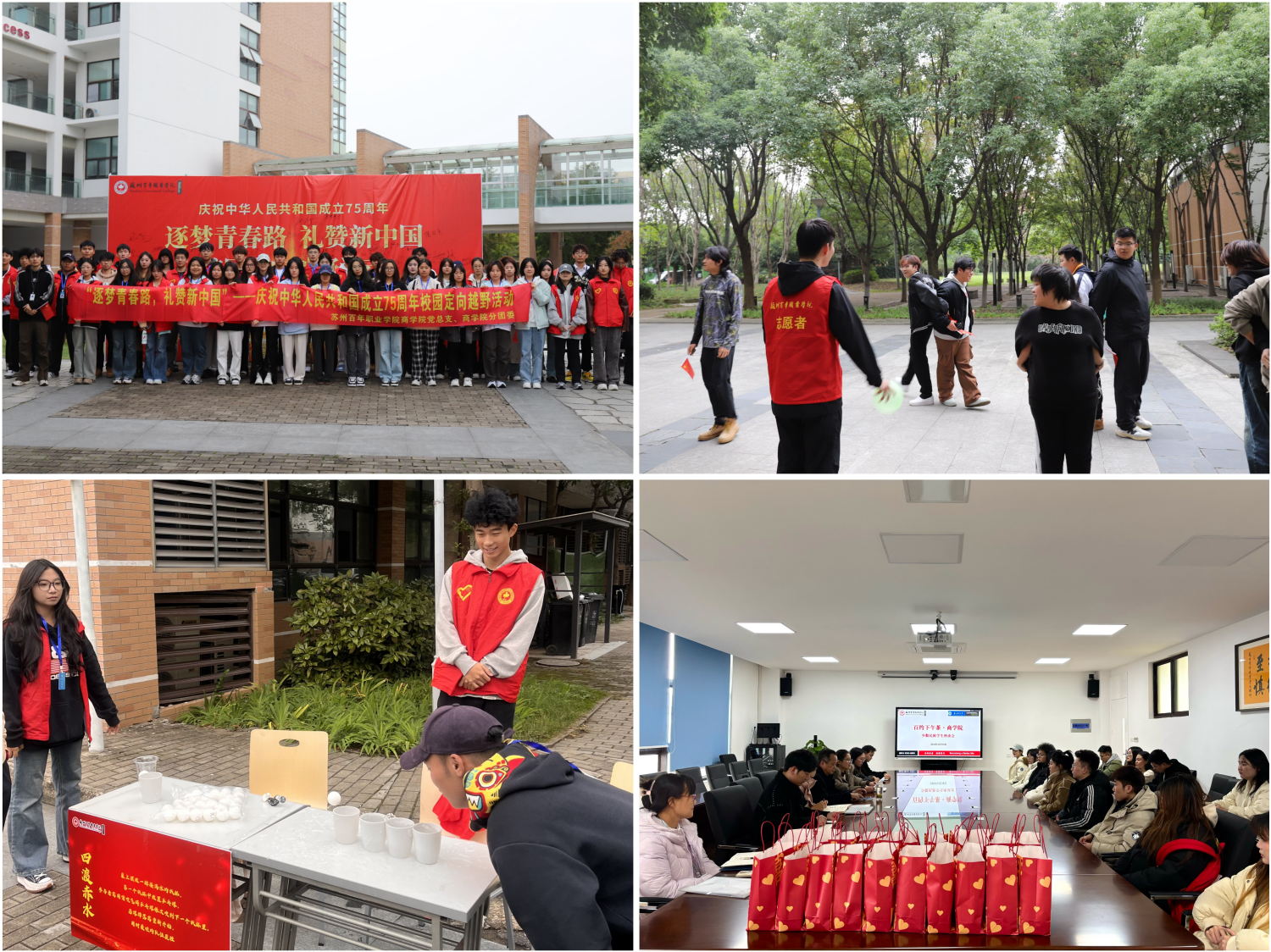 逐梦青春,彰显活力。为庆祝中华人民共和国成立75周年,商学院分团委特此开展“筑梦青春路,礼赞新中国”校园定向越野活动,增强学生的爱国情怀与团队合作精神。“最美评选”系列评选进一步加强学风建设,激励学生通过镜头捕捉校园学习生活中的美好瞬间。“百”约下午茶——少数民族座谈会不仅为商学院师生搭建了一个展示与分享各民族文化的平台,更促进了校园内的民族团结与文化交流,鼓舞学生树立远大理想,担当时代责任,画好民族团结“同心圆”。