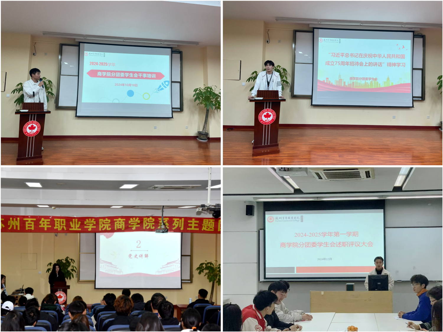 提升素养,凝心聚魂。商学院分团委坚持每周学生干部例会制度,并通过开展学生干部系列培训提升学生实用技能和团队协作能力,为团队发展注入活力与智慧。系列主题团日与思想教育活动强化了基层团组织建设,帮助学生进一步增强理想信念与社会责任感,提升家国情怀的使命感。在学期末,召开学生会述职评议大会总结过往经验,规划发展蓝图,为学生活动的持续发展提供坚实保障。