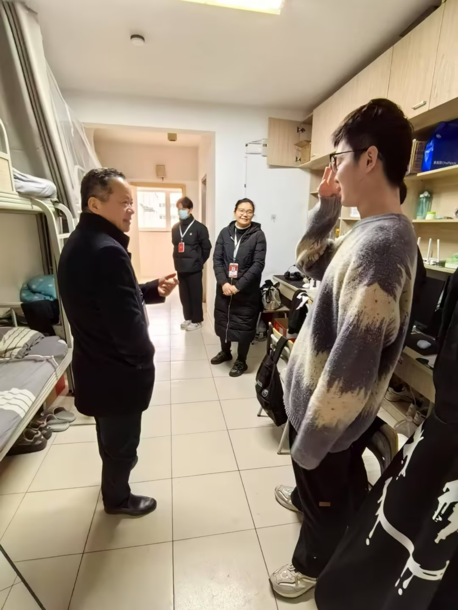 走访中沈宗根亲切地与同学们交流,询问他们住得是否习惯,学习是否顺利,有没有什么困难需要帮助解决。学生们也敞开心扉,向沈宗根讲述了自己在宿舍的生活点滴。沈宗根鼓励同学们在期末考试中取得好成绩,同时也对宿舍的卫生、安全等方面提出了自己的建议。