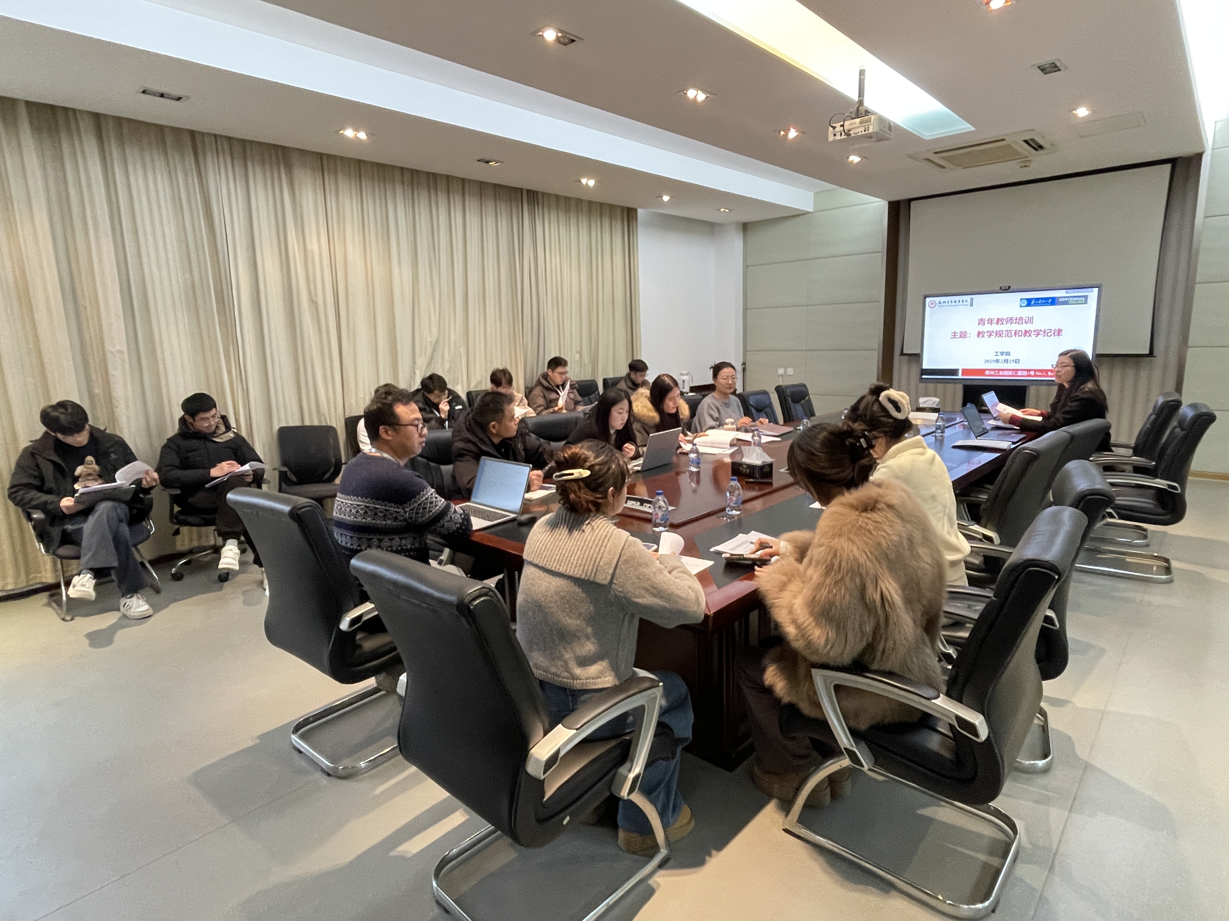 2 月 25 日,工学院为提升青年教师教学水平,加强教学管理规范化建设,特别针对 2023 年及之后入职的 16 位青年教师组织了一场干货满满的培训活动。此次培训以 “教学规范和教学纪律” 为主题,旨在助力青年教师快速成长,加强师德师风建设,为学院教学质量的提升奠定坚实基础。会议由工学院教学副院长宁方美主持。