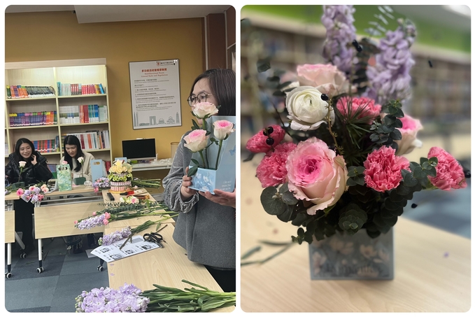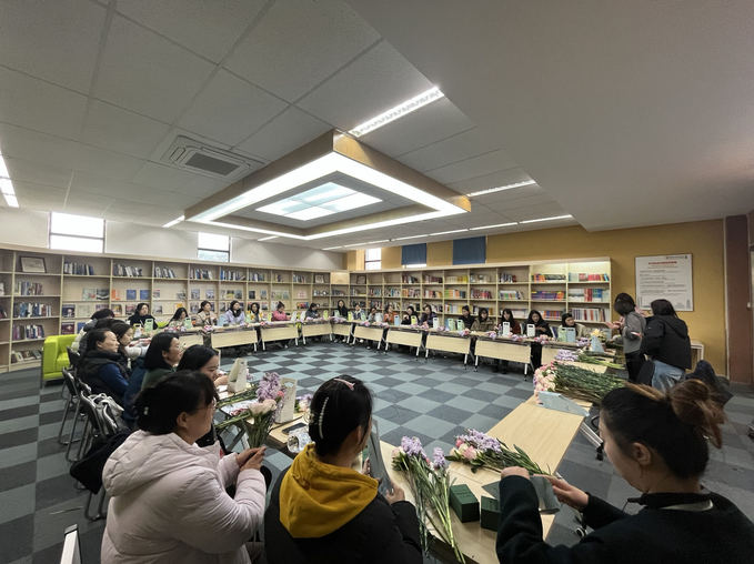 指尖花艺,绽放美丽: 在未来工匠学院蔡亚波老师的悉心指导下,老师们精心挑选鲜花,认真修剪枝叶,将玫瑰、紫罗兰、康乃馨、尤加利等花卉巧妙搭配,制作出一束束独具匠心的花艺作品,充分展现了开云新时代女教职工积极向上、热爱生活的精神风貌。