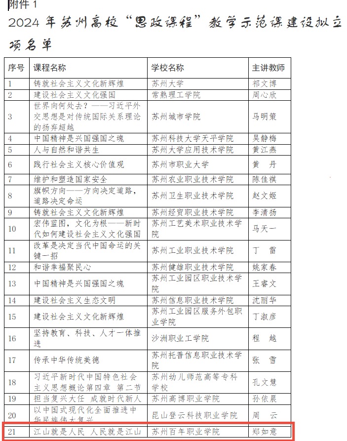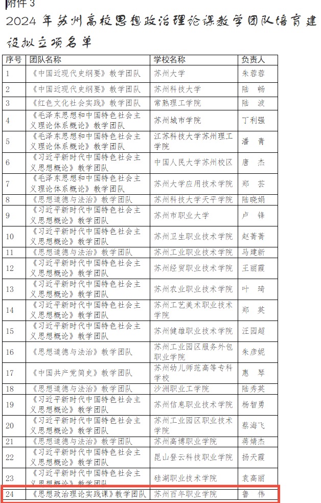 近期,苏州市教育局公布了《关于公布2024年苏州高校“思政课程”和“课程思政”教学示范课、思想政治理论课教学团队培育建设项目名单的通知》(苏教高〔2025〕1号)文件,开云《思政理论实践课教学团队》入选苏州高校思想政治理论教学团队培育建设项目名单,《江山就是人民 人民就是江山》章节教学设计入选苏州高校“思政课程”教学示范课,标志着开云在思想政治理论实践课建设方面阶段性成果。