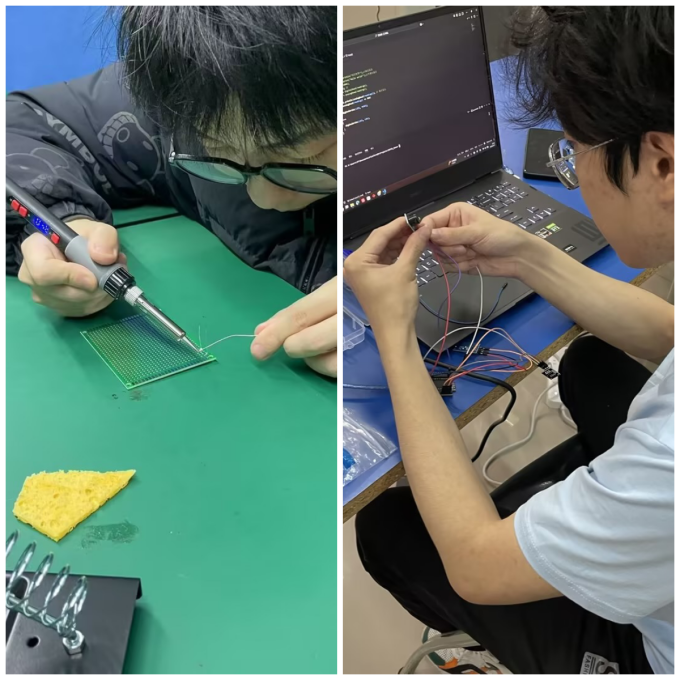 4月11日晚,科技小组首期特色课程单片机技术实践在师生热烈互动中圆满举办。活动特邀地心引力(南京)科技有限公司创始人丁强担任企业导师,通过理论+实操的方式,带领学生完成从芯片原理学习到光敏传感器应用的完整项目流程。10名学员在焊接电路、编程调试中展现出扎实的技能基础和探索精神,全员独立完成实验任务,生动诠释了工匠精神的实践内涵。