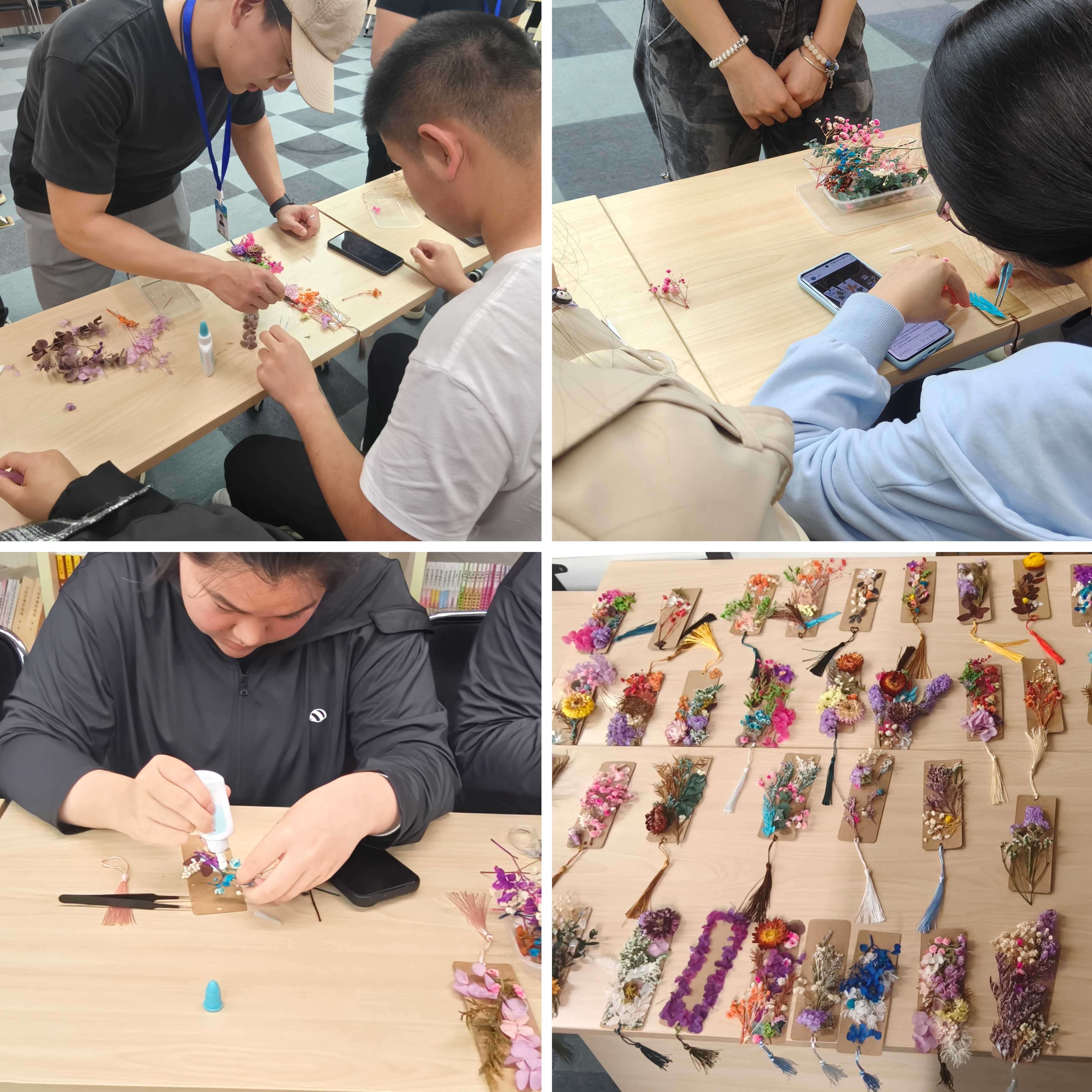 活动现场陈列着各种压花材料及专业制作工具,工作人员化身艺术导师,为同学们详细讲解压花书签的制作步骤。