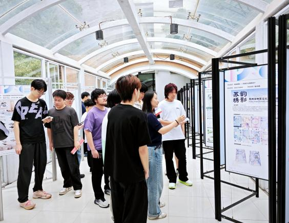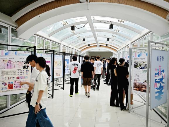 6 月 10 日起,艺术设计学院 2025届毕业设计展暨 23 级、24 级课程汇报展在闻道楼二楼艺术长廊正式拉开帷幕,本次展览将持续至6 月 30 日。本次展览荟萃广告艺术设计、数字媒体艺术设计、动漫制作技术、建筑设计、建筑室内设计、风景园林设计六个专业的优秀作品,为师生们带来一场视觉与创意的盛宴。