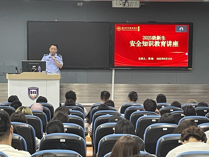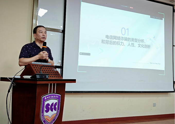 此次活动由学生事务部(安全保卫部)联合各二级学院精心筹备,特别邀请深耕校园安全领域的驻校民警周敏、独墅湖科教创新区高校局副局长薛建明担任主讲嘉宾,结合新生认知特点定制“法律普及+反诈防护”双主题内容。现场播放了“大学生消防安全之逸食住行”视频,讲师们以“校园常见法律风险”为切入点,结合宿舍违规用电、同学间权益纠纷、网络不当言论等贴近新生生活的真实案例,细致解读法律法规边界,引导新生深刻理解“遵纪守法不是约束,而是对自身权益的坚实保护”,从思想根源上树立法治敬畏心。