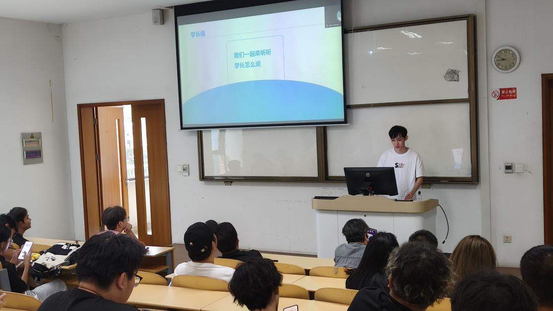 此外,两位在海外升学方面取得优异成绩的学长也来到现场,分享了雅思备考高分经验、国外院校申请策略以及择校技巧。他们的实用建议和亲身经历赢得了在场同学的阵阵掌声。