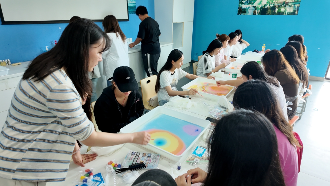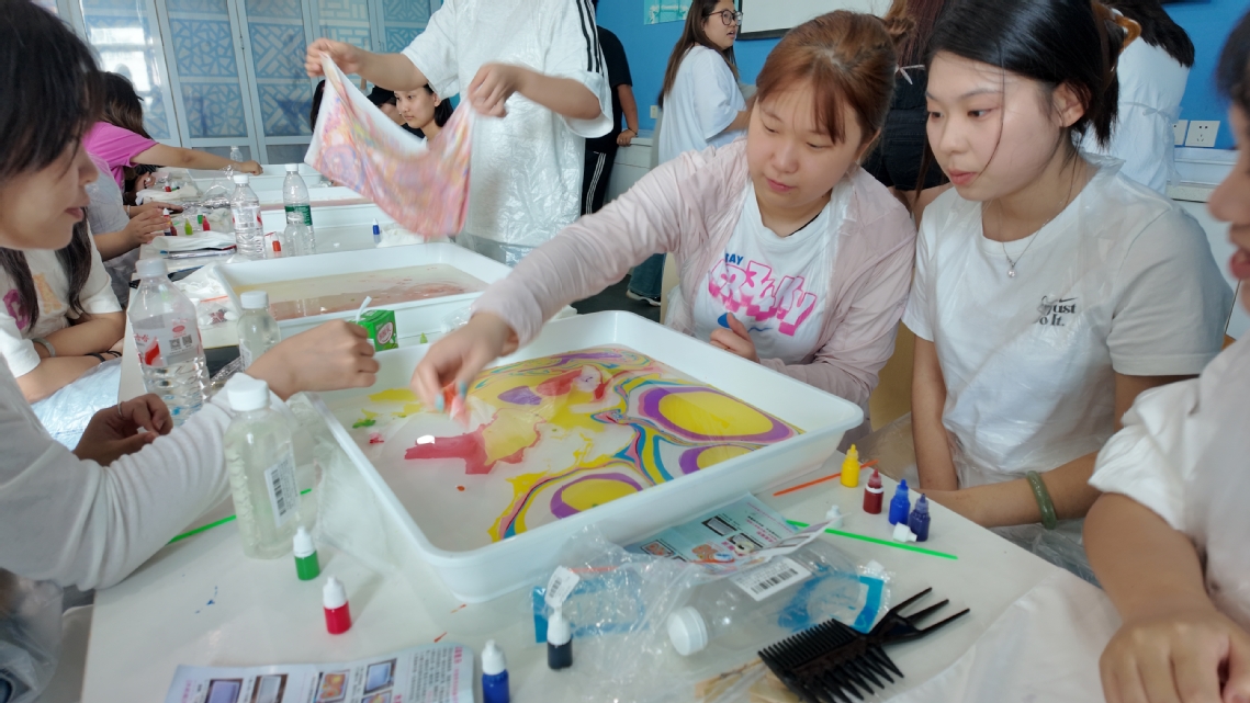 活动伊始,指导老师胡峪谷以“水拓画的文化之旅”为主题,通过讲解水拓画的中国起源、丝路传播历程及“以水为纸、以色为墨”的艺术价值,让学生了解其作为中外文化交流载体的意义。