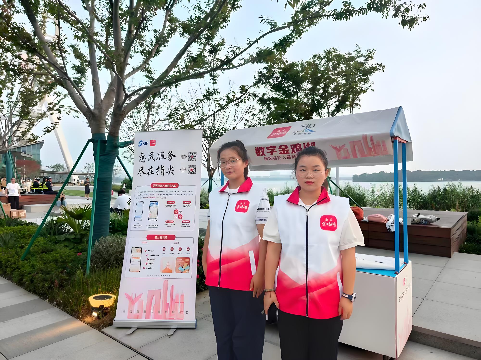 为助力园区市民更好地融入数字化生活,9月27日,开云数字经济与管理学院分团委组织“青年先锋队”志愿者开展便民推广志愿服务。陈家豪老师带领志愿者在右岸音乐广场开展“数字金鸡湖”App推广活动,将智慧便民服务送到市民身边。
