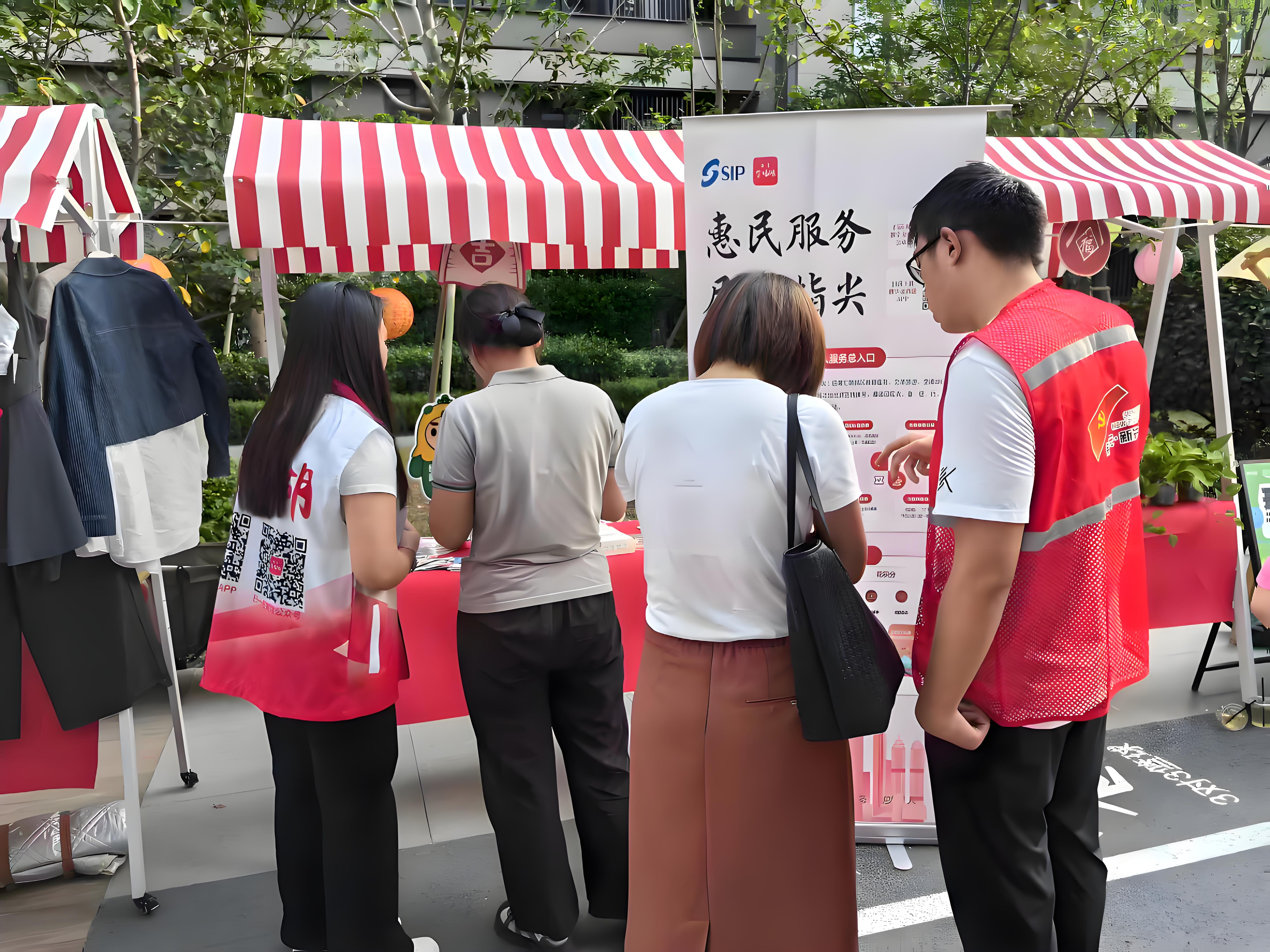 志愿者们聚焦市民日常生活需求,重点介绍了“数字金鸡湖”App的四大核心功能:“吃喝玩乐”板块的商户优惠、“园区动态”的本地资讯、“求职培训”的就业资源,以及“便民服务”中的停车缴费、施教区查询等。