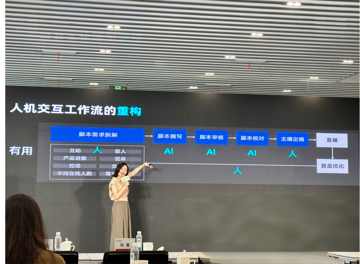 同学们还聆听了易论AI合伙人张媛媛主讲的《认知觉醒:从红海到蓝海,跨境电商AI应用全景纵览》,讲座阐释了AI技术如何驱动行业突破、开拓新市场,引导学生思考AI的工具价值与战略意义。