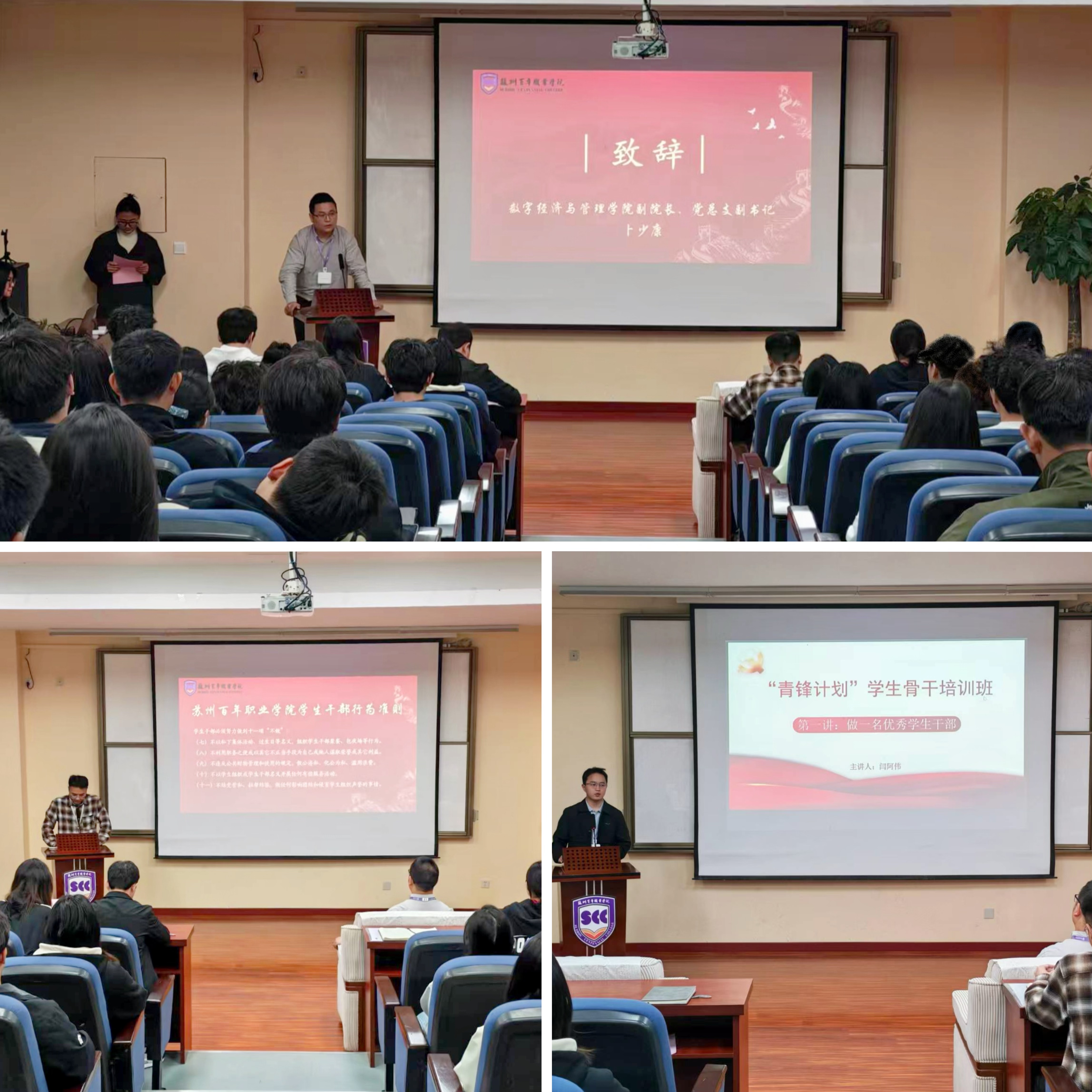 会议在庄严的国歌中拉开序幕。会议伊始,卜少康为本次大会致辞,他强调学生干部是连接学校与学生的重要桥梁,希望全体学生干部以此次培训为契机,坚定理想信念,锤炼过硬本领,以饱满的热情和务实的作风投入到学生工作中。陈家豪带领学生干部们系统学习了学校学生干部行为准则、自律公约等内容,要求学生干部们以身作则,发挥模范带头作用。