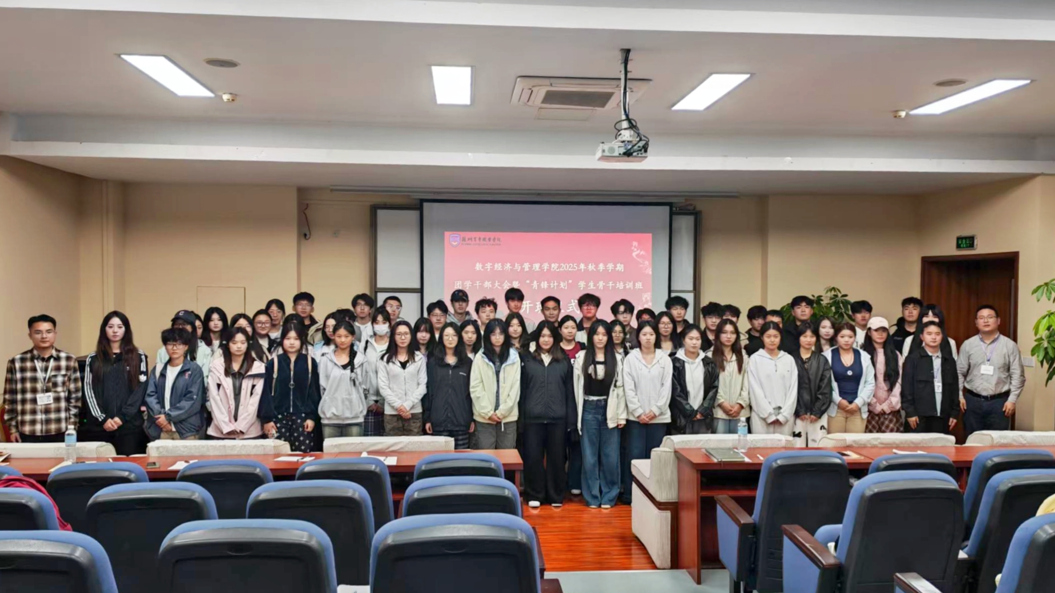 为切实提升学院学生干部履职能力与综合素质,强化团学组织“服务同学、凝聚青年”的职能,10月20日晚,数字经济与管理学院分团委顺利开展2025年秋季学期团学干部大会暨“青锋计划”学生骨干培训班开班仪式。数字经济与管理学院副院长、党总支副书记卜少康、学院分团委书记闫阿伟、青年先锋队指导教师陈家豪及130余名学生干部共同参加了开班仪式。
