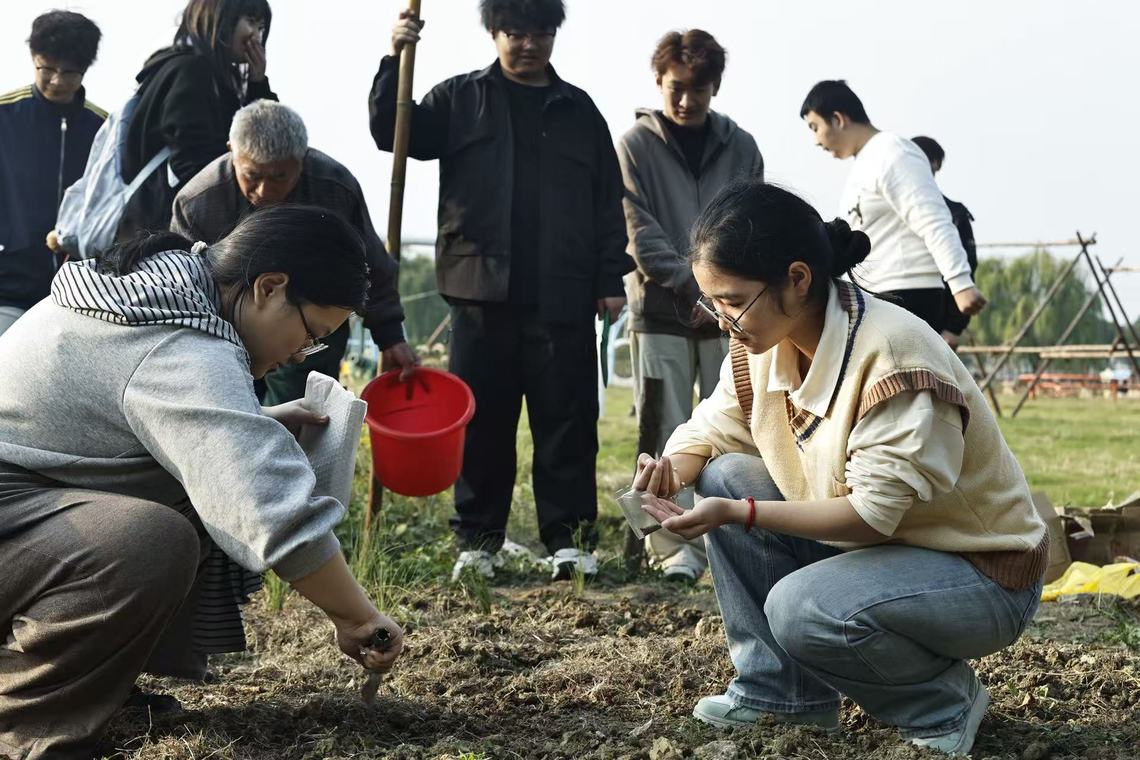 在实操环节,学生们分组完成选苗、配土、种植与浇水等任务。针对秋冬季园林养护中常见的昼夜温差与冻害问题,俞奕雯老师进行启发式指导,农场技术员现场演示了“覆盖秸秆保温”等实用方法,使学生不仅深化了设计思维,也掌握了从种植到养护的全流程技能。