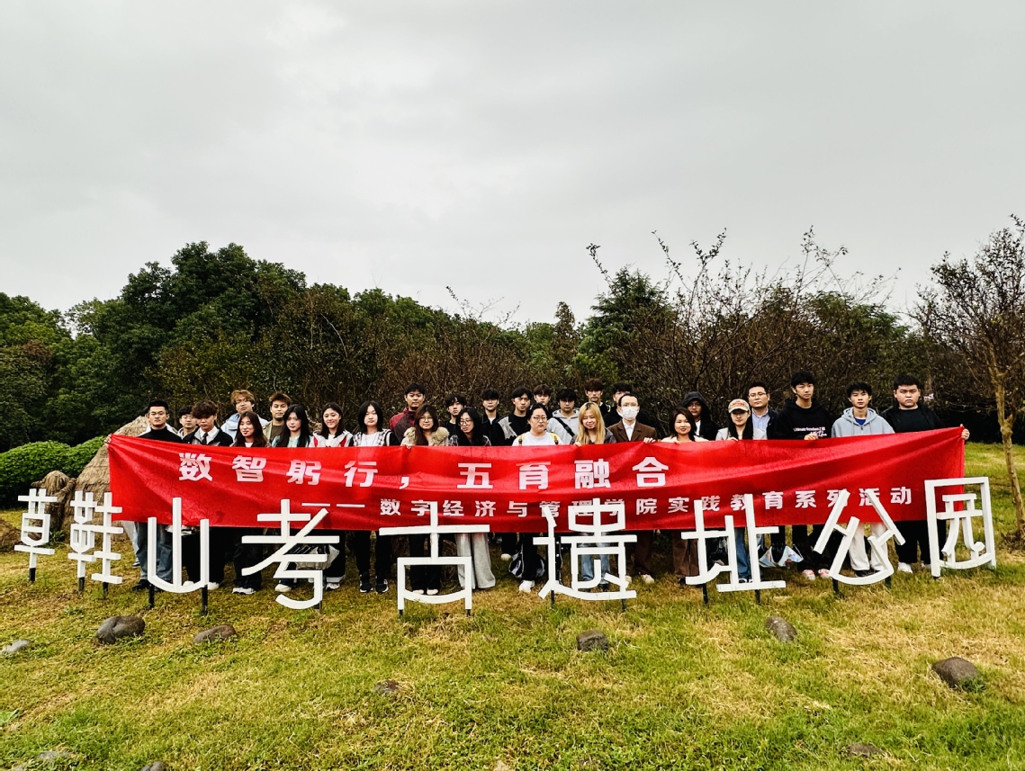 10月27日至28日,数字经济与管理学院组织国际经济与贸易、商务英语、国际金融等四个班级近130名学生,赴苏州草鞋山遗址公园开展“五育融合”田野实践活动。此次活动通过沉浸式文化体验与劳动实践,推动专业教育与综合素质培养深度融合。