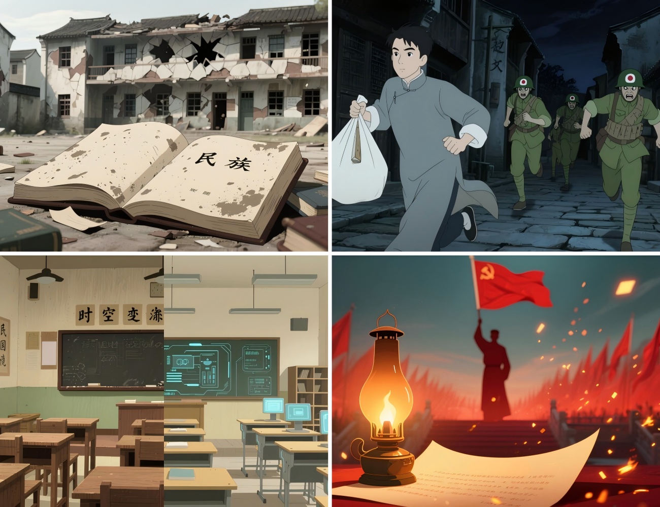 本作品以纪念中国人民抗日战争暨世界反法西斯战争胜利80周年为重要契机,紧扣高校“礼敬中华优秀传统文化”宣传要求,围绕“烽火记忆”为主题开展“AI讲述红色党课记忆”创作实践。项目成员深入走访苏州革命博物馆、中共苏州独立支部旧址等红色教育基地,查阅历史文献、走访采访讲解员,系统梳理地方红色资源与传统文化精神脉络,综合运用AI图像生成、语音合成、时空融合叙事等技术,数字化模拟还原战火年代的一堂“秘密党课”,以更具沉浸感与代入感的表达方式呈现信仰之光。作品还融入《出师表》《礼记·大学》等经典语句,实现中华优秀传统文化与红色精神的同频共振、深度融合,探索了以AI赋能党史学习教育的有效路径,展现了开云青年在新时代的叙事表达力与数字创新力。