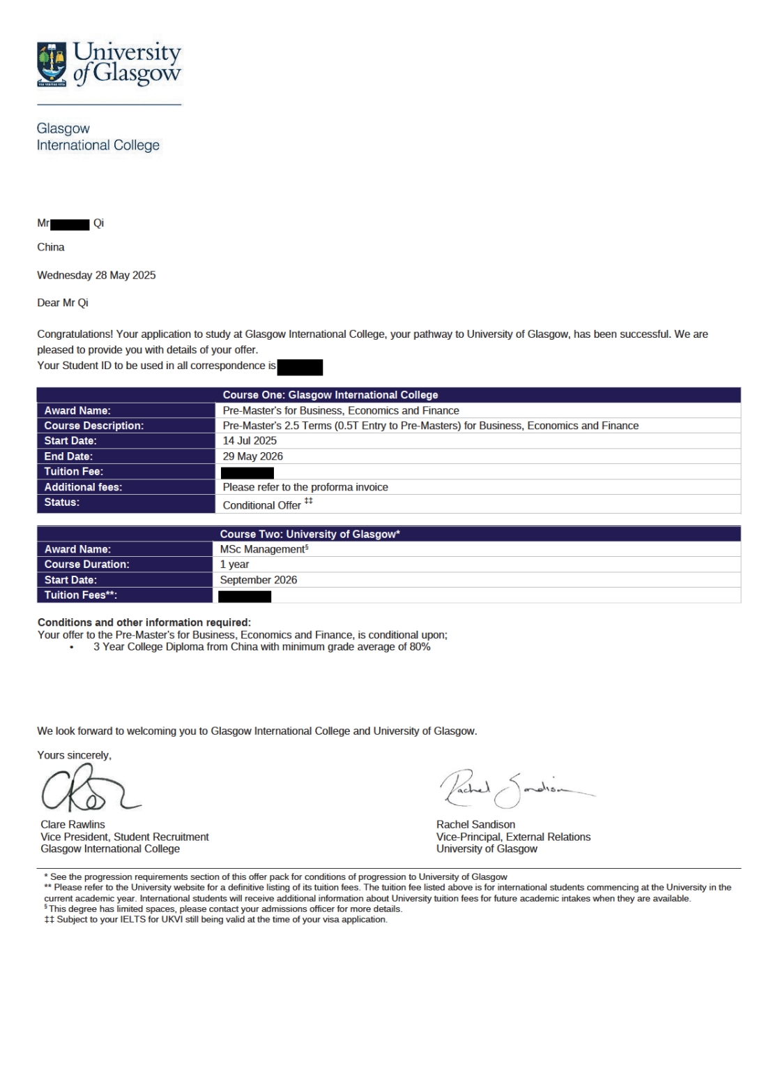 升学路径:通过格拉斯哥国际学院(GIC),专科生完成 6–12 个月预科(含语言与学术培训)后,可升读商科管理、计算机科学等热门硕士专业,录取透明、升学率高