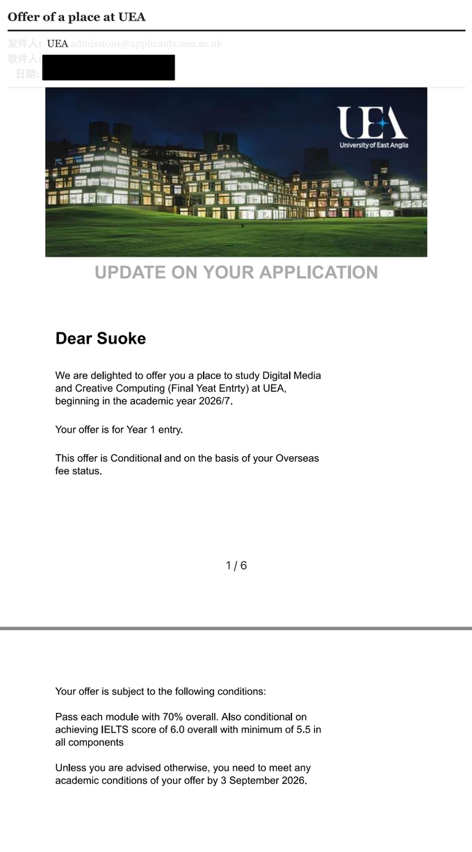 (徐诗怡录取通知书)