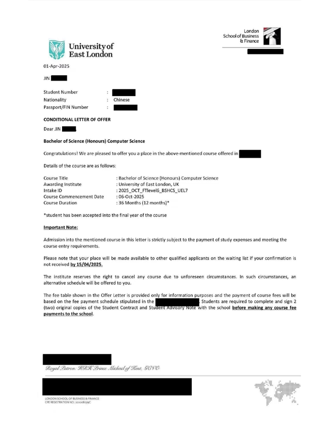 升学路径:专升本(Top-Up),1 年获得英国本科学位,课程紧密对接伦敦金融与科技产业资源。