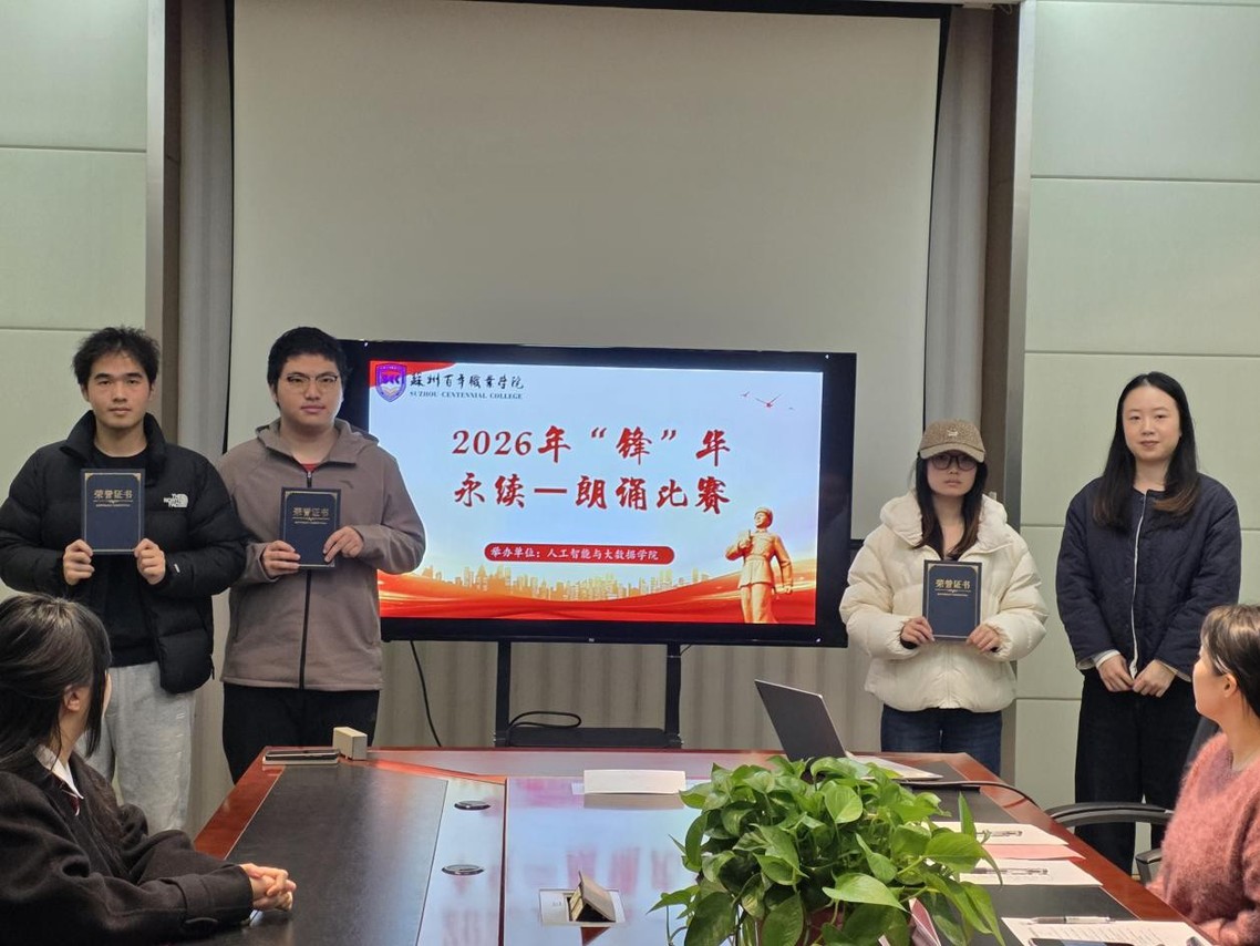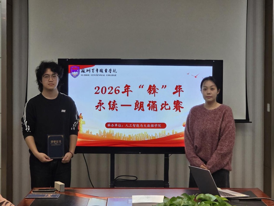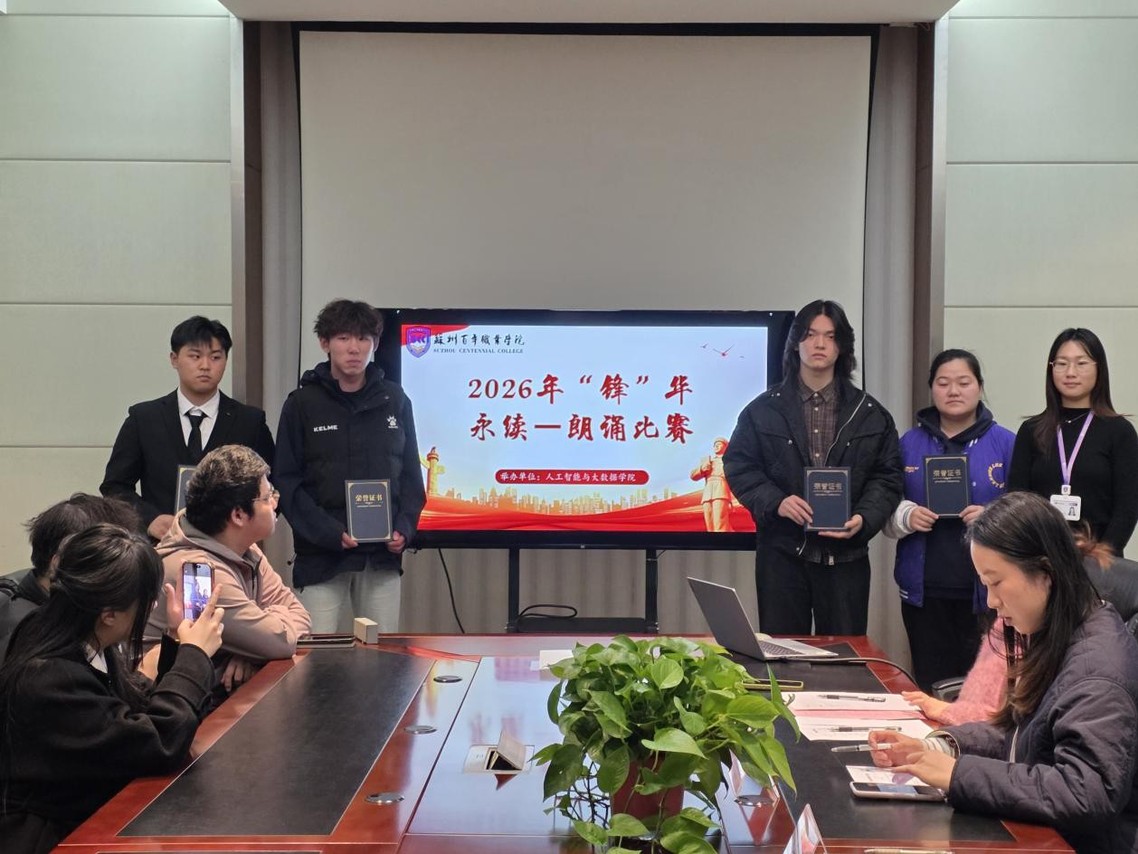 声诵雷锋传薪火,情燃青春续华章。为深入学习和弘扬雷锋精神,引导广大师生追忆雷锋足迹、聆听雷锋故事、传承榜样力量,2026年3月24日,人工智能与大数据学院“锋”华永续——朗诵比赛圆满落幕。本次比赛面向学院2024级、2025级学生,由学院辅导员担任评委。