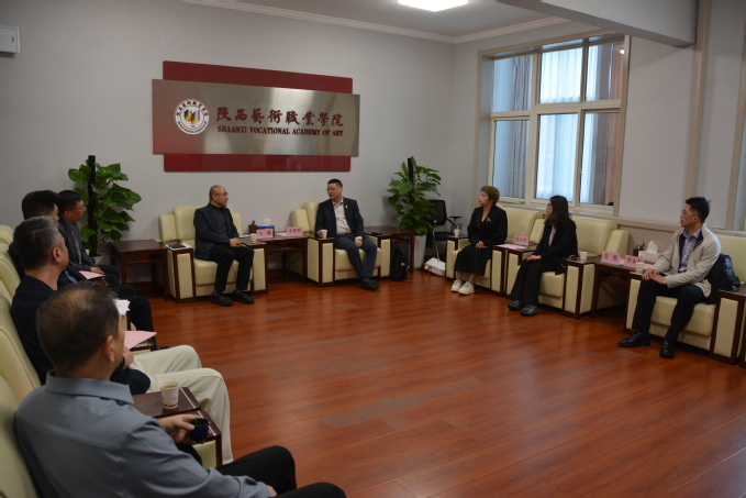 当日上午,由校长李世明带队,校长助理侯玉杰、人力资源部主任冼稚、校长办公室副主任李永泰一行赴陕西艺术职业学院考察学习。该校党委委员、副校长马琳,党委委员、组织部部长许仲举及党政办、教务处、美术与设计学院相关负责同志热情接待调研组一行,并举行座谈。